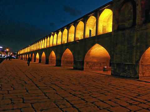 Siosepol or Siose Bridge (which means 33 Bridge or the Bridge of 33 Arches), also called the Allah-Verdi Khan Bridge, is one of the eleven bridges of Isfahan, Iran and the longest bridge on Zayandeh River with the total length of 297.76 metres (976.9 ft). It is highly ranked as being one of the most famous examples of Safavid bridge design. |